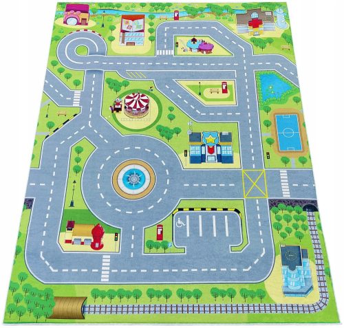 Dywan dla dzieci w formie ulicy, idealny do zabawy i tworzenia różnych scenariuszy. Jest wykonany z materiałów, które są bezpieczne dla dzieci i przyjazne dla skóry.