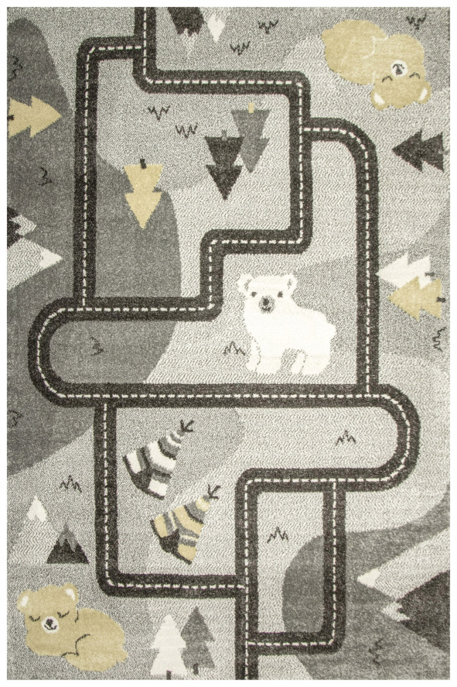 LIMA to kolekcja dywanów stworzonych z myślą o dzieciach - słodkie wzory i ciekawa kolorystyka składają się na pięknie prezentujące się runo, które ucieszy każde dziecko! Dywan w pokoju dziecięcym pełni wiele funkcji - izoluje ciepło, stanowi miejsce do zabawy oraz ozdabia wnętrze. Przedstawiany dywan zdobi rysunkowy wzór w uliczki, góry i misie. Kolory wykorzystane do stworzenia wzoru zawierają pastelowe szarości, krem, żółty. Zastosowana kolorystyka w połączeniu z lekko melanżowanym typem runa, nadaje wrażenia miękkości i przytulności.