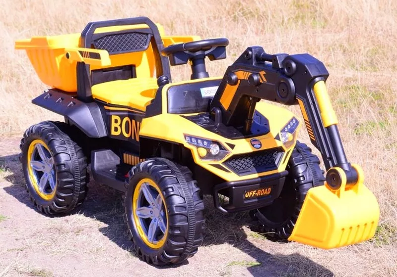 KOPARKA NA AKUMULATOR z ruchomą łyżką - możliwość jazdy pojazdem za pomocą silnika napędowego oraz sterowania łyżką/góra dół+ dalej/bliżej.