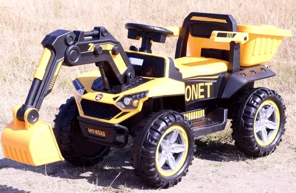 KOPARKA NA AKUMULATOR z ruchomą łyżką - możliwość jazdy pojazdem za pomocą silnika napędowego oraz sterowania łyżką/góra dół+ dalej/bliżej.
