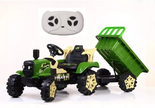 Traktorek na akumulator. Napęd zapewniają mu dwa potężne silniki elektryczne, zasilane akumulatorem o pojemności 6V7Ah. Na wyposażeniu pojazdu znajdują się uruchamiane przyciskami efekty dźwiękowe, wejście USB na pendrive, regulator głośności, światełka LED. Dostępne są 3 prędkości poruszania do przodu. Bezpieczną naukę jazdy zapewnia dołączony najnowszy pilot zdalnego sterowania 2.4G, dający rodzicowi pełną kontrolę nad pojazdem. Odpinana przyczepka.