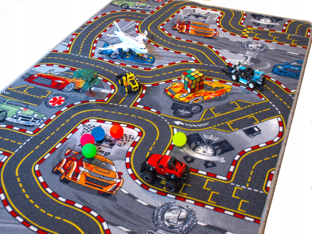 samochodzikami bądź innymi zabawkami po całej powierzchni dywanu!