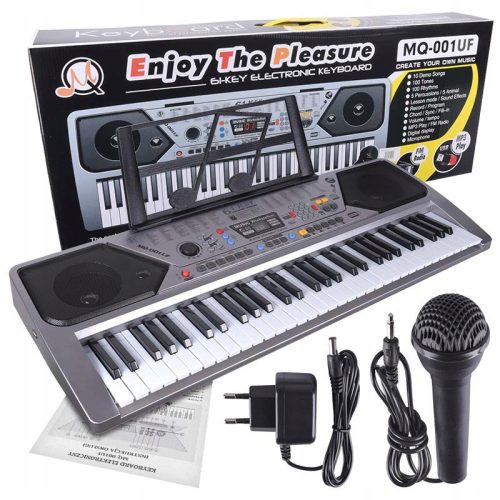 MQ 001 UF Keyboard to oferujący wiele ciekawych brzmień, rytmów, efektów i funkcji keyboard z mikrofonem dla dzieci, wyposażony w port USB, odtwarzacz MP3 i radio FM, który stanowi doskonały instrument do zabawy, nauki gry na pianinie oraz pomysł na prezent dla muzykalnych dzieci.