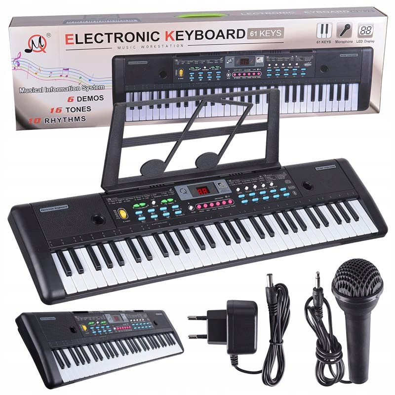 MQ 605 to oferujący wiele ciekawych brzmień, efektów, podkładów rytmicznych i innych dodatkowych funkcji ✅ keyboard z mikrofonem dla dzieci, idealny do zabawy i nauki gry na pianinie. Instrument posiada 61 klawiszy, bank 16 instrumentów i 10 rytmów, port USB, odtwarzacz MP3 oraz obsługuje Bluetooth.