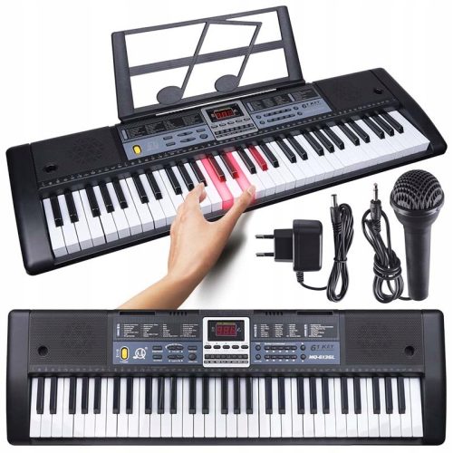 MQ 6136L KEYBOARD to bardzo fajny keyboard edukacyjny z mikrofonem dla dzieci wyposażony w 61 klawiszy, które w trybie lekcji są podświetlane dla lepszej orientacji na klawiaturze, idealny do nauki oraz codziennej zabawy z muzyką. Obszerny bank brzmień, rytmów oraz funkcji sprawia, że to instrument, który rozwija zainteresowania i pozwala poznać bogaty świat dźwięków.