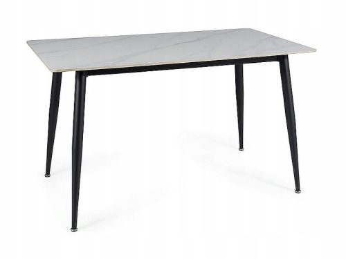 Stół RION to propozycja dla osób ceniących sobie prostotę i ciekawy design. Elegancki, biały blat z połyskującym efektem marmuru świetnie sprawdzi się w jadalni lub salonie. Stelaż wykonany z metalu malowanego na kolor czarny w połączeniu z nowoczesnym blatem tworzą piękną całość, która zadowoli najbardziej wymagającego klienta. Ceramiczny, połyskujący blat jest wytrzymały i łatwy w utrzymaniu czystości. Do stołu Rion doskonale pasują welurowe krzesła, na stelażu w kolorze czarnym, które dostępne są w naszym sklepie.