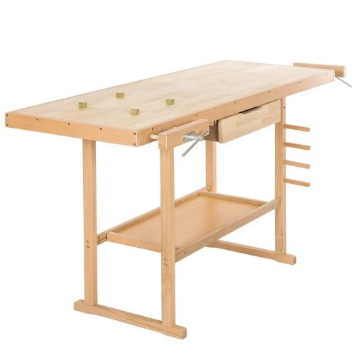 Stół stolarski tectake wykonany jest z trwałego materiału. Jest przeznaczony dla hobbystów, majsterkowiczów jak i profesjonalistów. W szufladzie schowasz niezbędne narzędzia oraz akcesoria. Przedmioty o większych gabarytach pomieszczą się na półce znajdującej się pod blatem. Pracując możesz umieścić obrabiany przedmiot w którymś z dwóch imadeł. Stół wymaga prostego montażu, za pomocą załączonych akcesoriów.