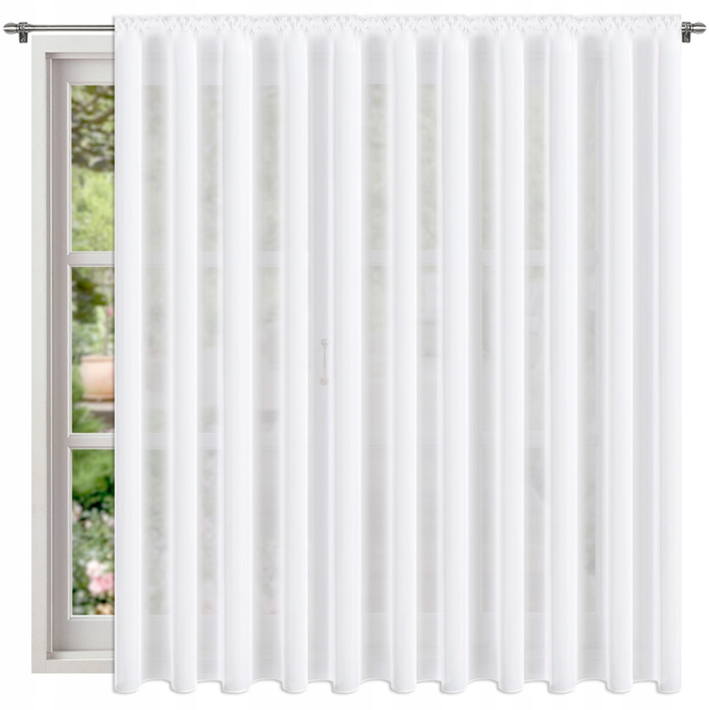 Uszyta, gotowa do powieszenia firana z delikatnego, śnieżnobiałego woalu, uszyta na taśmie marszczącej