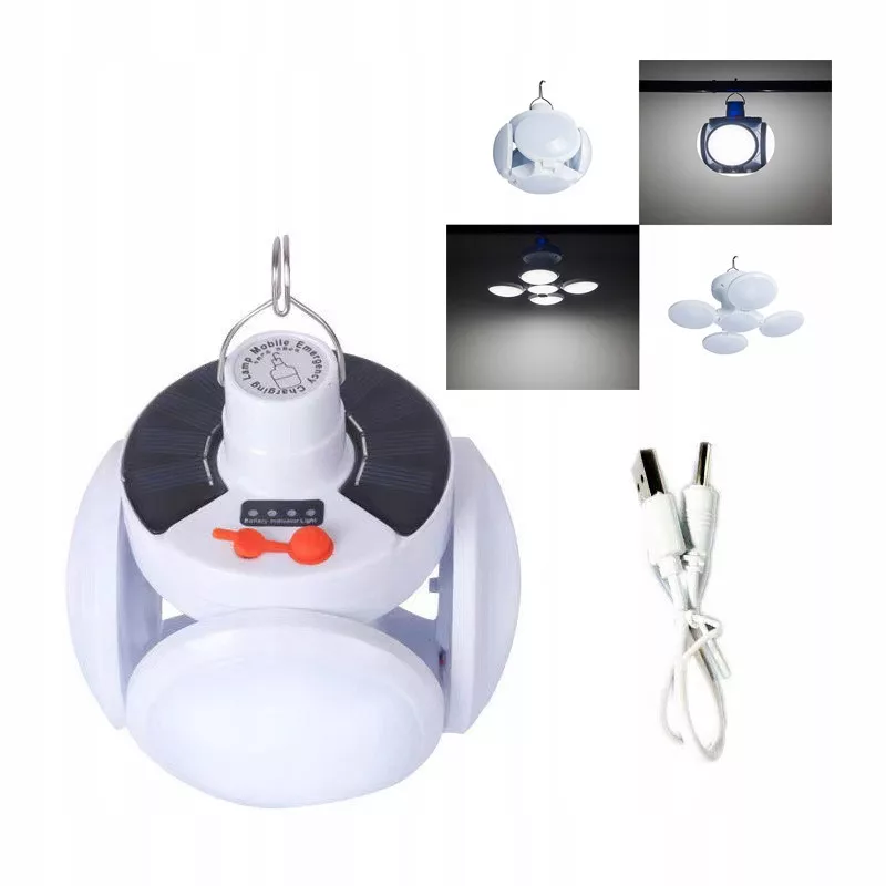 Ten przedmiot to przenośna lampa namiotowa LED zasilana energią słoneczną. Nie wymaga prądu. Wysokowydajny panel słoneczny zapewnia jaśniejsze światło, ale oszczędza więcej energii w codziennym użytkowaniu. Nadaje się do użytku domowego i użytku na zewnątrz