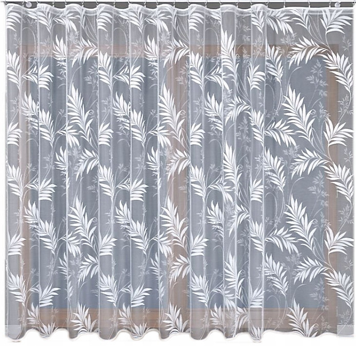 Przedmiotem sprzedaży jest firana żakardowa w klasyczny wzór w liście po całości firany. Jest ona wykonana z wysokiej jakości przędzy nabłyszczanej. Dobrze przepuszcza światło oraz nie wymaga prasowania. Firana ma starannie obszyte boki.