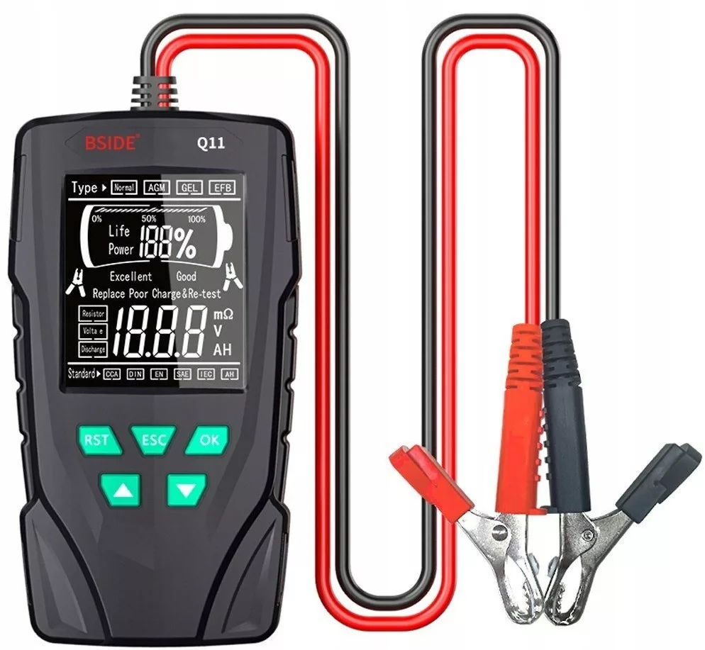 Tester akumulatorów samochodowych Bside Q11 to niewielkich rozmiarów, lekkie i praktyczne urządzenie, które służy do pomiaru i analizy wydajności akumulatorów kwasowo-ołowiowych.
