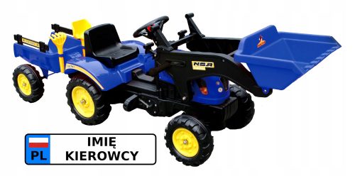 Traktor na pedały z przyczepą i ruchomym ładowaczem oraz tablicą rejestracyjną w formie naklejki, to idealny prezent dla dziecka.