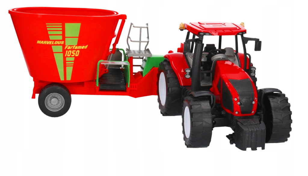 ???? Nasz traktorek z paszowozem to więcej niż tylko zabawka - to miniatura prawdziwej maszyny rolniczej! Zobacz imponujące wymiary tego zestawu - aż 58cm długości, co sprawia, że jest to nie tylko zabawka, ale również doskonały element dekoracyjny w pokoju dziecka.