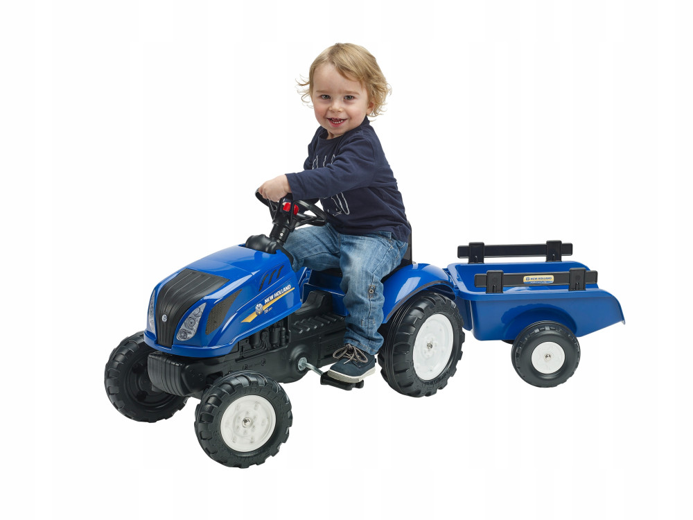 Traktor na pedały z przyczepką New Holland producenta FALK to spełnienie marzeń niejednego małego traktorzysty. Starannie wykonany, z dbałością o najmniejszy szczegół! Żaden Farmer by takim nie pogardził. Pojazd wykonany z najwyższej jakości tworzywa. Przeznaczony dla dzieci w wieku od 2 lat. Pojazd jest wyposażony odpinaną przyczepę z panelami oraz kierownicę z klaksonem. Koła traktorka zostały wykonane z wysokiej jakości plastiku. Produkt posiada otwieraną maskę z imitacją prawdziwego silnika.