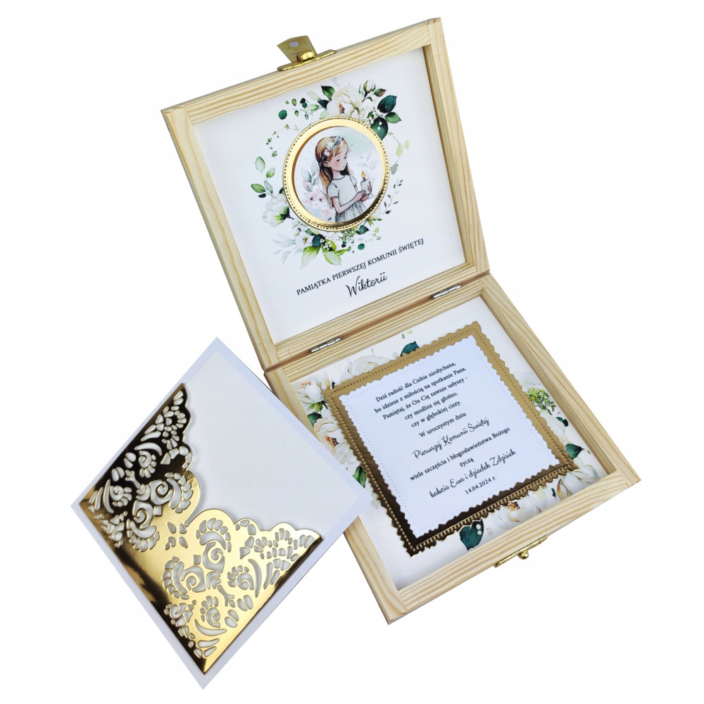 Zapraszam do zakupu wyjątkowego pudełeczka na Pierwszą Komunię Świętą, które zostało stworzone z najwyższej jakości materiałów, aby zapewnić trwałość i piękny wygląd. W środku pudełeczko zostało przyozdobione białym papierem fakturowanym oraz złotym papierem lustrzanym, nadającym mu luksusu i elegancji.