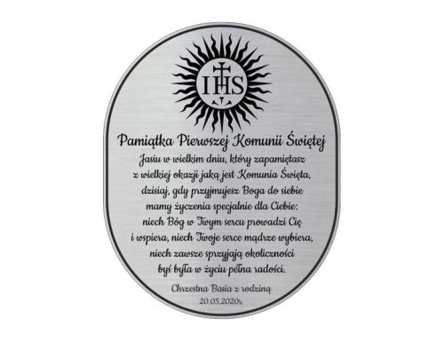 -wykonana techniką grawerowania laserowego z laminatu w kolorze złotym lub srebrnym