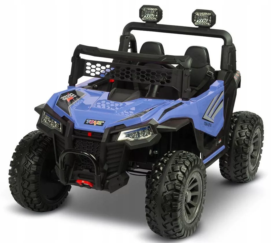 Blaze to terenowy pojazd na akumulator, który zapewni świetną zabawę dwójce dzieci. Bezpieczeństwo jazdy zapewnia wygodne siedzisko z ekoskóry, wyposażone w 2 komplety 3-punktowych pasów. Zawieszenie pojazdu zostało wzbogacone o 4 amortyzatory, które pomogą w przemierzaniu nierównego terenu, co w połączeniu z kołami wykonanymi z pianki EVA gwarantuje niezwykły komfort jazdy. Blaze jest wyposażony w światła LED umieszczone na przodzie pojazdu oraz na belce nad głowami pasażerów. Realizmu podczas zabawy dodadzą takie elementy jak otwierane drzwi z klamką, podnoszona maska oraz otwarty bagażnik z tyłu pojazdu. Blaze napędzany jest przez 4 silniki o mocy 45W zasilane jednym akumulatorem 12V10Ah. Rodzice mniejszych dzieci mogą zdalnie sterować pojazdem za pomocą dołączonego kontrolera bezprzewodowego. Zabawę z Blaze umili panel multimedialny z USB i bluetooth.