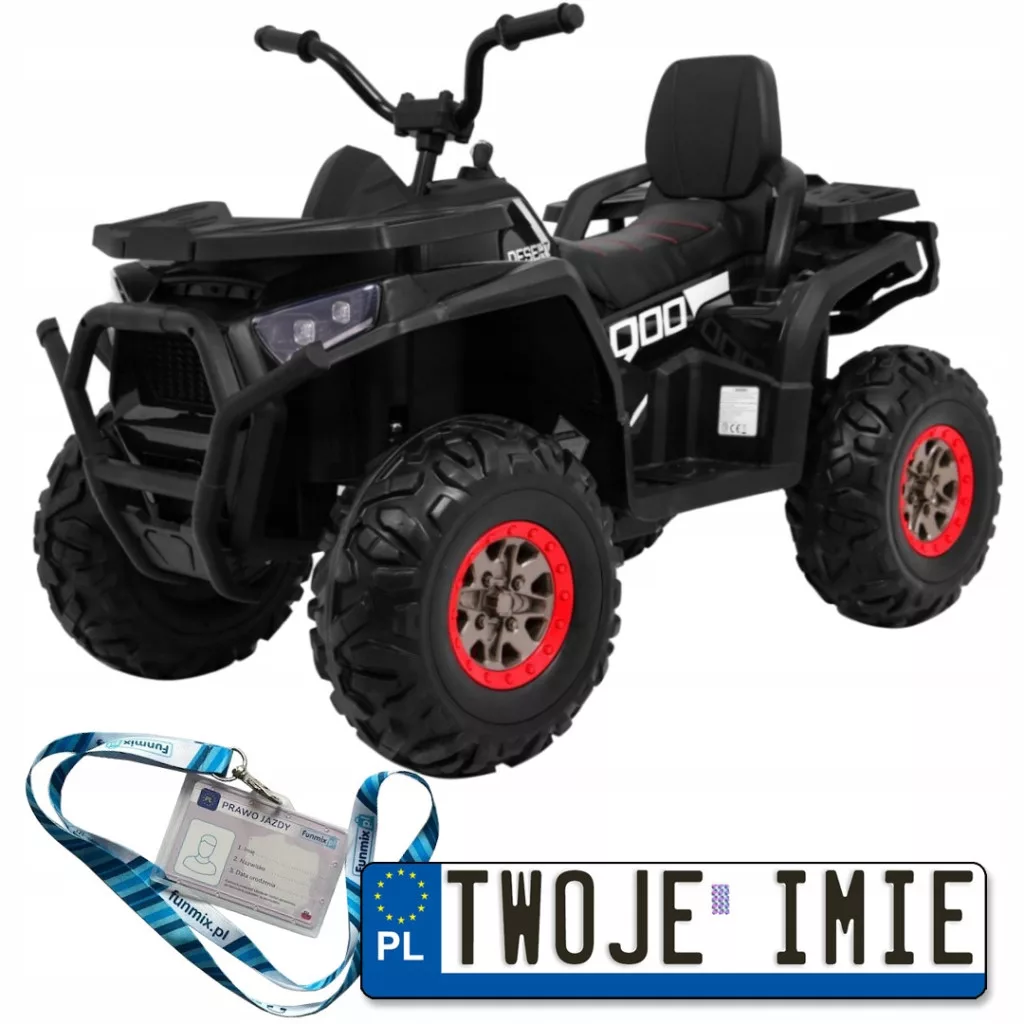 Przedstawiamy Państwo mocny Quad na akumulator z napędem na cztery koła. Moc każdego silnika to 45W, mocny akumulator 12V/10Ah. Pojazd wykonany został z najwyższej klasy plastiku. Posiada duże piankowe koła, na każdym z kół amortyzator, wzmocnione sprężyny tylne i przednie, dla komfortu jazdy. Miękkie siedzenie z czarnej ekoskóry, wolny START, dwie szybkości jazdy (quick/slow), jazda do przodu i tyłu. Oświetlenie LED, światła przednie. Panel muzyczny z radiem FM, MP3, wejściem AUX, USB, umili każdą przejażdżkę. Maksymalne obciążenie nie powinno przekroczyć 30 kg.