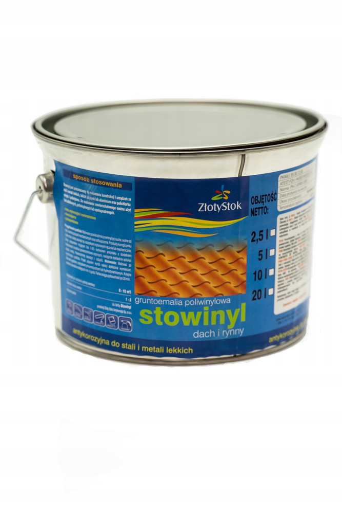 Farba STOWINYL® grubo powłokowa przeznaczona jest do malowania konstrukcji i urządzeń ze stali i metali lekkich, takich jak cynk lub aluminium, narażonych na działanie czynników korozyjnych i mechanicznych, eksploatowanych w temperaturze od -20°C do +70°C w atmosferze morskiej, miejskiej i przemysłowej. Jest odporna na oddziaływanie roztworów kwasów i zasad oraz olejów technicznych.