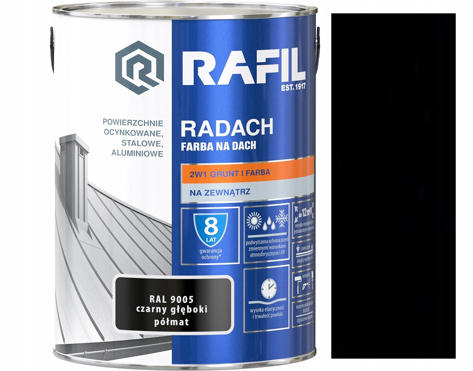 RADACH FARBA NA DACH zapewnia długotrwały efekt dekoracyjny malowanych powierzchni, a w zestawieniu z Rafil PODKŁAD ANTYKOROZYJNY stanowi silne zabezpieczenie przed korozją.