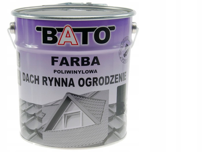 Farba poliwinylowa BATO DACH RYNNA OGRODZENIE przeznaczona jest do bezpośredniego malowania powierzchni ocynkowanych, aluminiowych i stalowych oraz do renowacji starych powłok malarskich powlekanych na blachach ocynkowanych, np. pokrycia dachów, parapetów, bram i ogrodzeń.