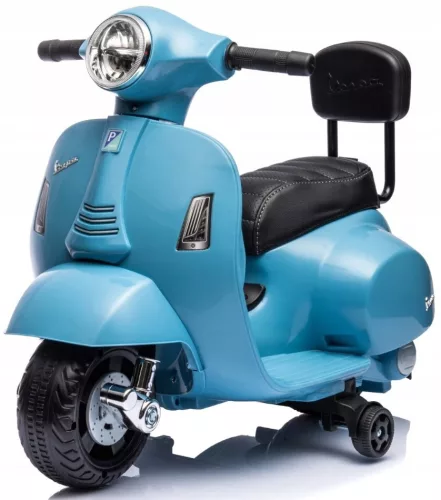 Sun Baby Jeździk akumulatorowy Scooter Vespa z siedzeniem z ekoskóry z przeszyciem i oparciem Niebieski