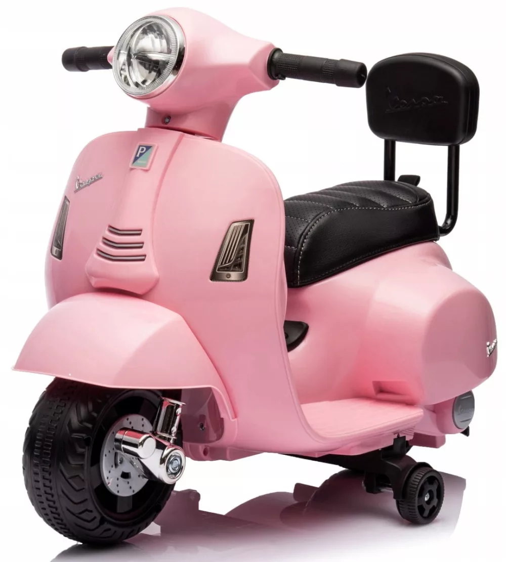 Jeździk dla dziecka Skuter Vespa na akumulator z oparciem pudrowy róż