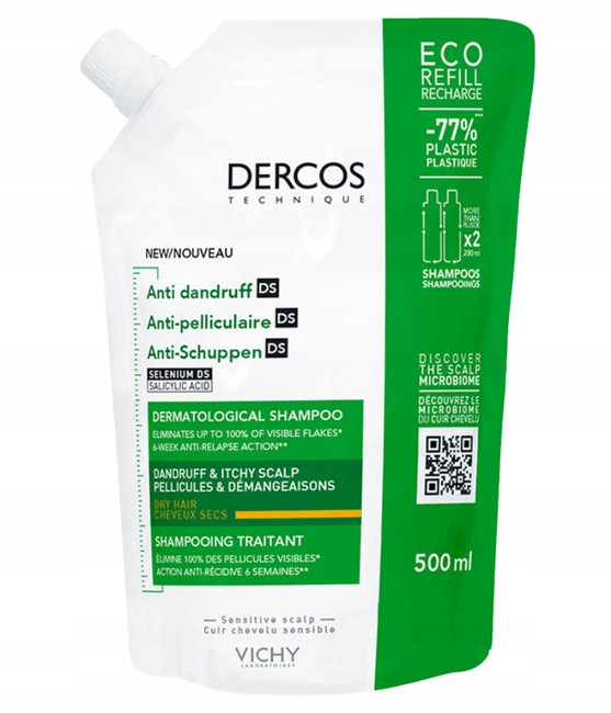 Vichy Dercos DS Eco-Refill, Shampoo Antiforfora per Capelli Secchi, 500 ml