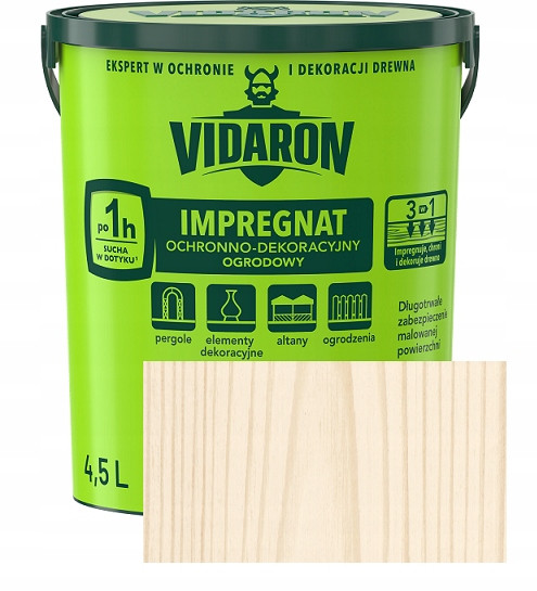PRZYGOTOWANIE PODŁOŻA: w celu uzyskania najlepszego efektu drewno powinno być wysezonowane, suche, odtłuszczone, czyste oraz oczyszczone ze starych powłok farb czy lakierów. Elementy tłuste, łuszczące się i źle przylegające do drewna mogą zmniejszyć przyczepność i trwałość Impregnatu. Przy malowaniu renowacyjnym na drewno wcześniej malowane i zszarzałe, które posiada starą i zniszczoną powłokę ‐ należy drewno dokładnie przeszlifować, zeskrobać zanieczyszczenia i luźne warstwy, przeszczotkować oraz odpylić. Surowe drewno, które będzie użytkowane na zewnątrz pomieszczeń należy zaimpregnować VIDARON Impregnatem Ochronnym ‐ Gruntującym, który zabezpiecza przed biokorozją drewna. Impregnat Ogrodowy należy nakładać po upływie minimum 24 godz od nałożenia Impregnatu Ochronnego ‐ Gruntującego.
