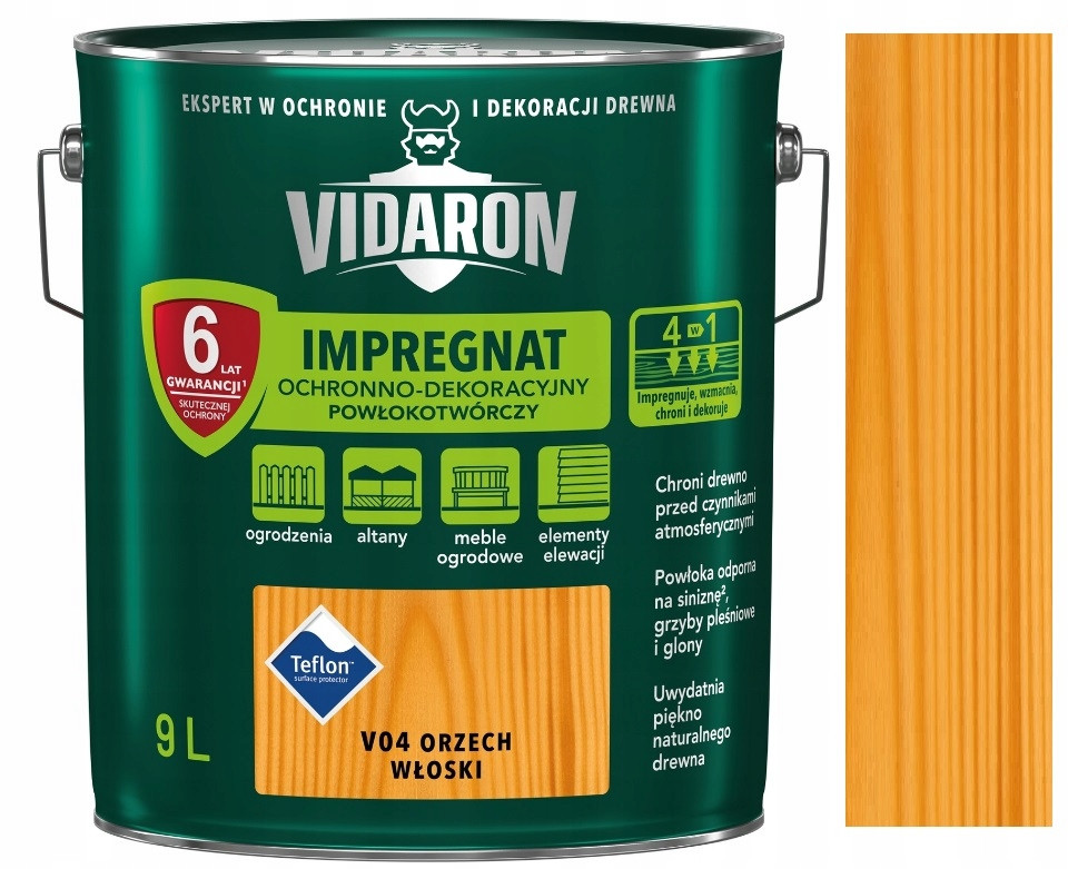 Nowoczesny Impregnat zawierający Teflon™ surface protector, przeznaczony do zabezpieczania surowego drewna i materiałów drewnopochodnych. Nadaje impregnowanym elementom eleganckie matowe wykończenie, podkreślające naturalny rysunek słojów drewna. W połączeniu z Impregnatem Ochronnym VIDARON zapewnia 6-letnią gwarancję skutecznej ochrony.