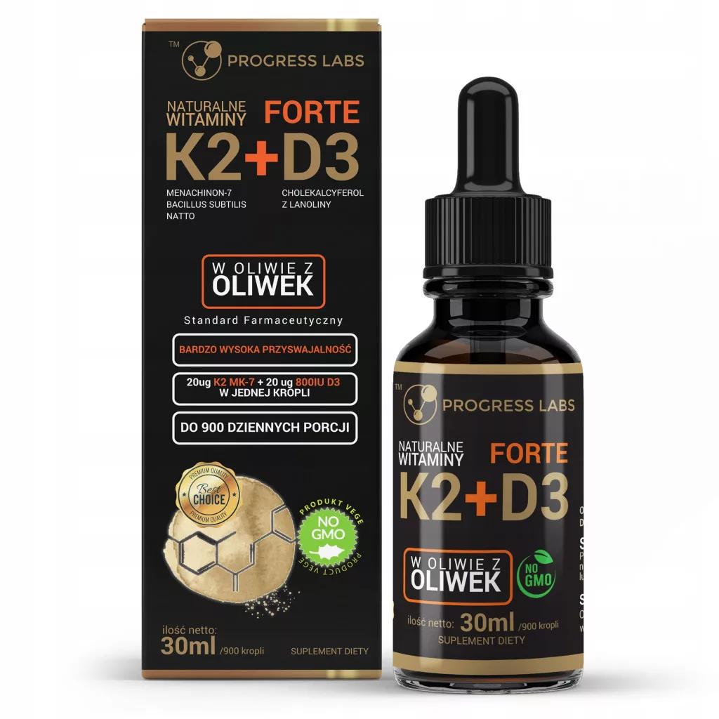 DLA KTÓRYCH WARTO WYBRAĆ NATURALNĄ WITAMINĘ K2 MK-7 z natto + D3 w kroplach FIRMY PROGRESS LABS®: