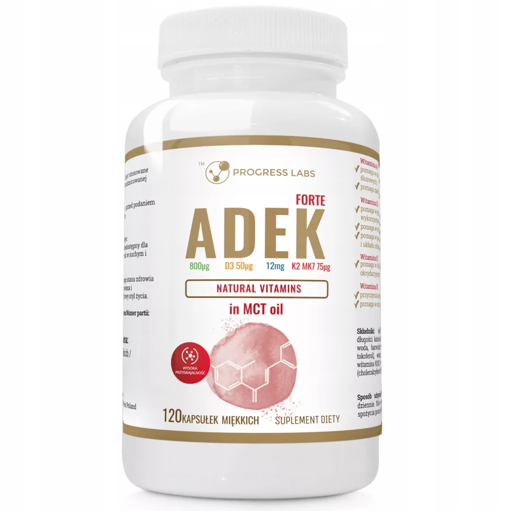 Najlepsza przyswajalność - kapsułki miękkie (softgel) wypełnione olejem z kokosa (MCT) - Witaminy A, K2 MK-7, D3 i E firmy Pogress Labs® są zawieszone w organicznym oleju kokosowym (MCT), aby zapewnić ich jak najlepszy transport, rozpuszczalność i maksymalną przyswajalność.