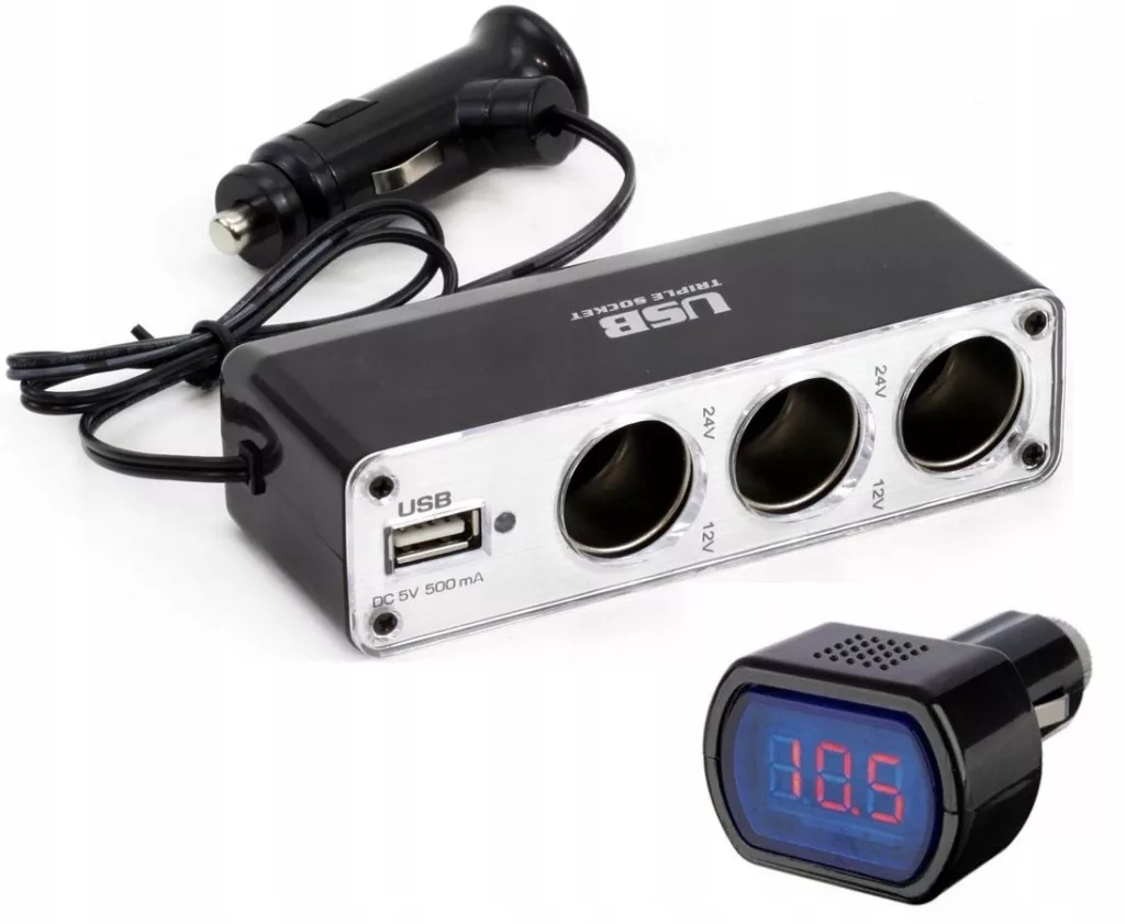 Rozdzielacz gniazda zapalniczki sprawdzi się z takimi urządzeniami jak: telefon, tablet, CB Radio, nawigacja, aparat.