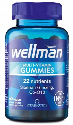 Z 22 składnikami odżywczymi w pysznym smaku, naturalnym pomarańczowym smaku gumy do żucia, Wellman Gummies są idealne dla tych, którzy nie lubią połykać tabletek. Gumy są łatwym i pysznym sposobem na utrzymanie zdrowia u mężczyzn w każdym wieku i są odpowiednie również dla wegan.