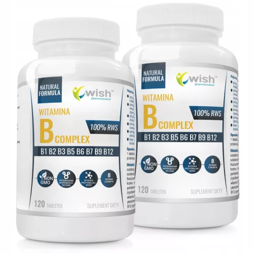 Witamina B Complex od Wish Pharmaceuical polecana jest dla osób narażonych na pracę w przewlekłym stresie, dla osób intensywnie trenujących, oraz dla wszystkich którzy chcą poprawić stan skupienia i uwagi. Oraz dla osób które stosują diety wegańskie oraz wegetariańskie.