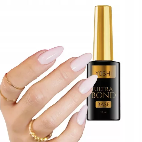 Yoshi Ultra Bond Base to Baza hybrydowa przeznaczona do manicure hybrydowego. Poprawia stan płytki paznokcia, jednocześnie mocno zwiększając przyczepność lakieru i przedłużając trwałość manicure`u. Bardzo dobrze nadaje się również pod żel budujący, w formie “wcierki”.