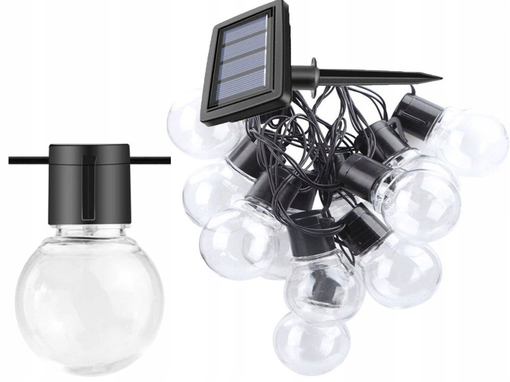 LAMPA SOLARNA GIRLANDA  żarówki 10 LED biały zimny