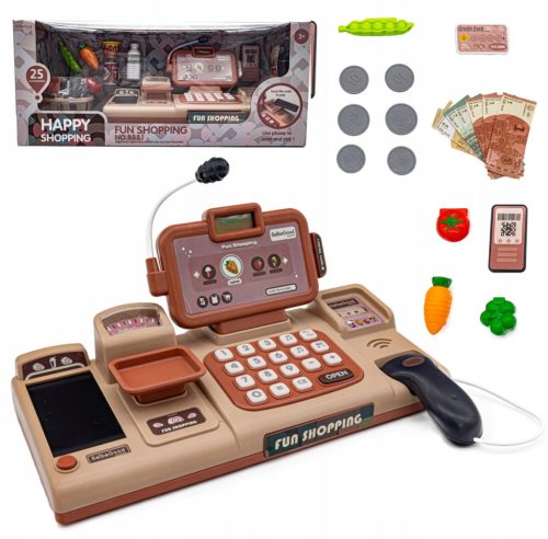Sklepowa Kasa Fiskalna dla Dzieci WAGA Koszyk Skaner ZABAWA w SKLEP Towary