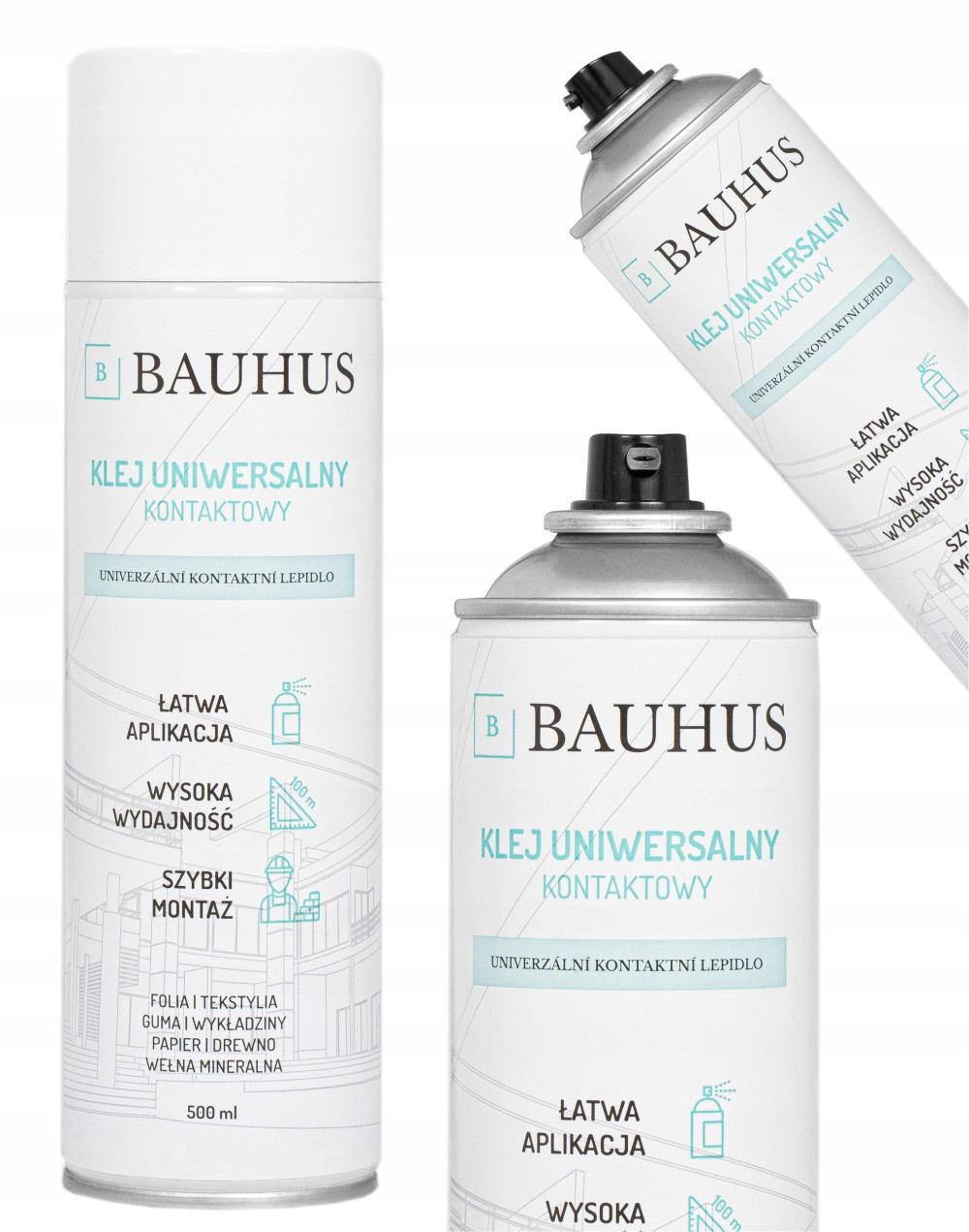 Służy także do klejenia folii do betonu lub drewna oraz do klejenia folii pomiędzy sobą. Klej kontaktowy Bauhus srpawdzi się doskonale do mocowania piankowych dylatacji przy wylewkach podłogowych.