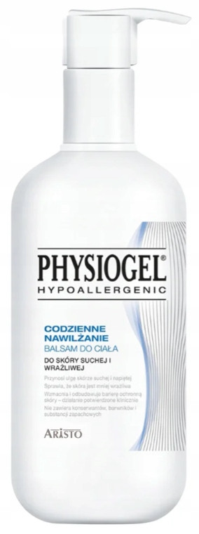 Physiogel Codzienne nawilżanie balsam nawilżający przeznaczony jest do codziennego stosowania dla osób o skórze suchej i wrażliwe. Codzienna pielęgnacja i nawilżanie skóry suchej, wrażliwej oraz w sytuacji uczucia szorstkości, napięcia i dyskomfortu Odpowiedni do stosowania u dzieci i niemowląt.