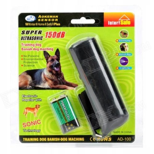 Ultradźwiękowy przenośny odstraszacz psów  z  latarką Ultradźwiękowy odstraszacz psów - pełni funkcję trenera.
