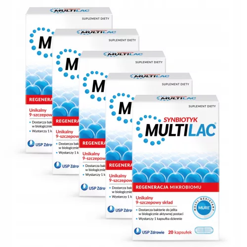 MULTILAC to unikalne połączenie prebiotyku i aż 9 specjalnie wyselekcjonowanych szczepów bakterii. Aż 9 szczepów bakterii zwiększa szansę na dopasowanie się do indywidualnego mikrobiomu, a dzięki zawartości prebiotyku bakterie szybciej się namnażają i odbudowują mikrobiom.