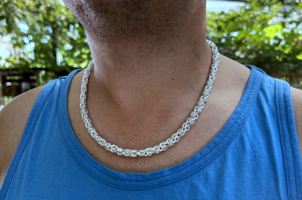Catena reale da 93 g 6,5 mm 60 cm - Tessuto bizantino in argento 925 fatto a mano