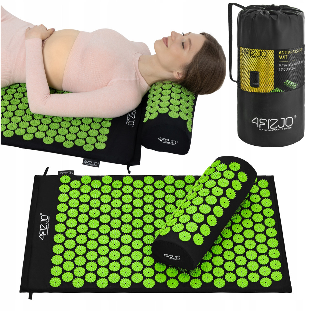 Tappetino da massaggio 4FIZJO, tappetino per digitopressione 4fizjo con punte, cuscino verde