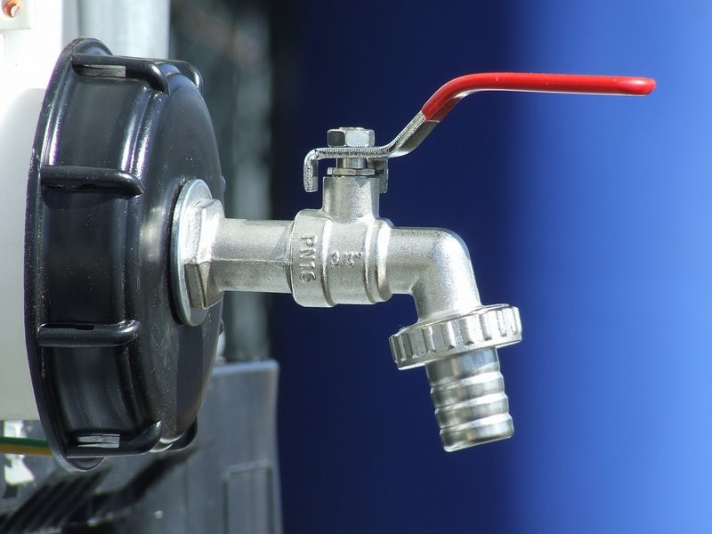Kran (zawór czerpalny) 3/4 cala zamontowany na dużym korku 10 cm