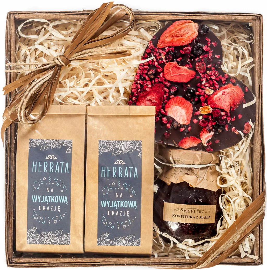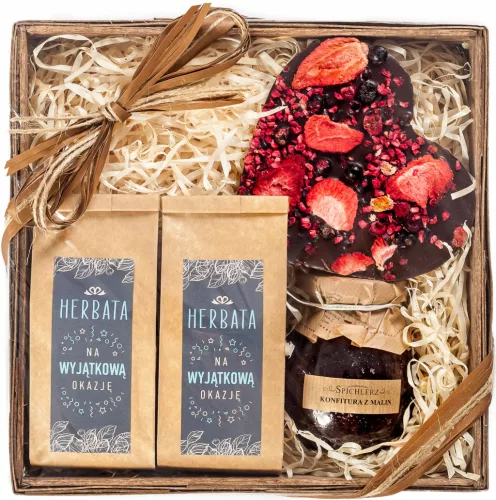 Zestaw na prezent, który oferujemy idealnie sprawdzi się na każdą okazję. Jest to świetny pomysł - oryginalny i zawsze trafiony! Zawartość opakowana jest w wysoko przeźroczystą folię celofanową. Całość dopełnia gustowna wstążka nadająca całemu zestawowi uroku oraz wyjątkowego wyglądu. Koszyk wypełniony jest estetyczną wełną drzewną. Produkty spożywcze znajdujące się wewnątrz zestawu są świeże i posiadają wyjątkowy smak, dzięki czemu ten upominek zostanie zapamiętany przez obdarowaną osobę na bardzo długo.