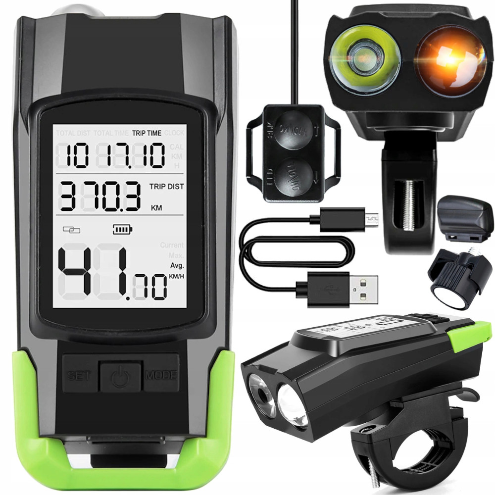 Lampka rowerowa LED 3w1 licznik rowerowy bezprzewodowy + klakson