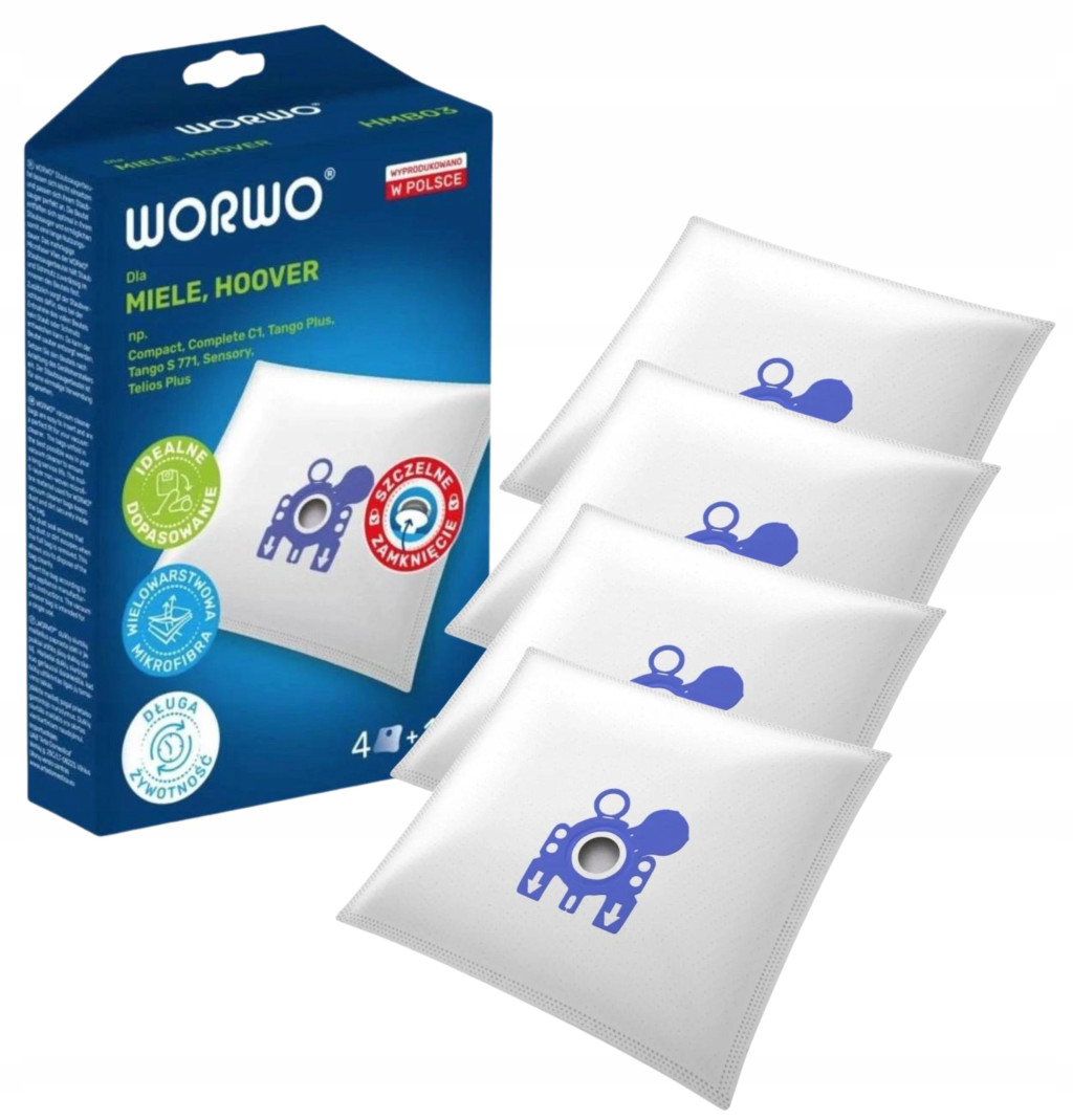 Worki do odkurzacza. W komplecie 4 sztuki. Zastępują modele worków: H02, H03, H11, ML01, ML03.