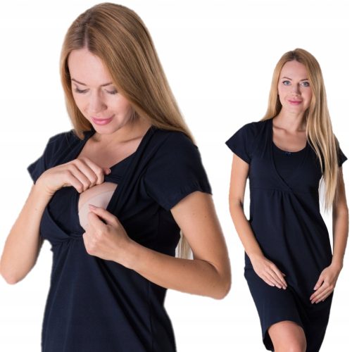 Koszula na okres ciąży, porodu i do karmienia. Wystarczy delikatnie odchylić koszulę, aby wygodnie nakarmić maleństwo. Wykonana z bardzo dobrej bawełny z dodatkiem elastanu dzięki temu rosnący brzuszek bez żadnych oporów mieści się w koszuli. Po porodzie koszula dopasowuje się do kształtów sylwetki tuszując pozostałe niedoskonałości.