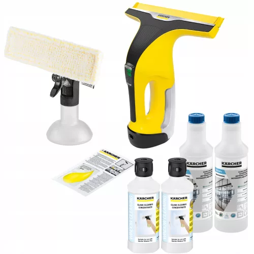 Najwyższy model myjki do okien Karcher w zestawie ze spryskiwaczem i  niezwykle chłonnym padem z mikrofibry.